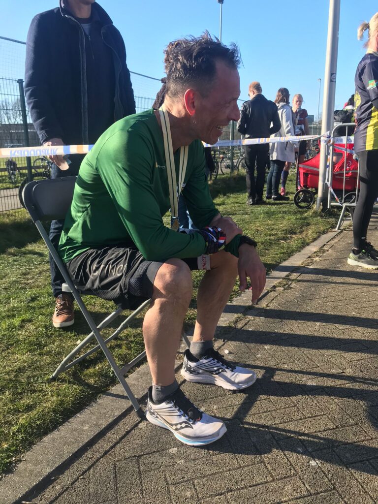 Bij de finish waren alle Purmerenders present. Van Astrid kreeg ik een aluminium dekentje om niet teveel af te koelen, van Olivier een stoel en een lekker bakje tomatensoep. Dat ging er prima in. Daarna even bijgekomen en door Astrid en Robert werd ik met de auto bij m’n hotel afgeleverd. Ik was blij dat ik dat stuk niet meer hoefde te lopen! M’n doel om onder de 12:30 te lopen of in ieder geval sneller dan in 2019 heb ik niet gehaald, maar ik ben zeer tevreden dat ik binnen de tijd ben gefinisht. Ik kijk terug op een memorabel weekend, want dat was het!