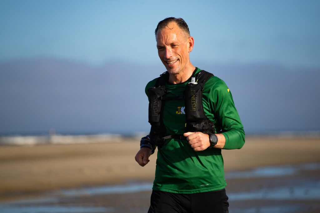 Het was weer prachtig om boven de Waddenzee te zien dat het weer licht werd. Bij 30 kilometer zag ik dat Edwin Otto moest uitstappen in verband met een bovenbeenblessure. Ik was daardoor best een beetje van slag, want ik vond het zo balen voor hem. Daarna heb ik mezelf herpakt en ben ik weer doorgelopen, want na de Slufter kwam het strand in zicht. Ik wist dat ik daar de nodige tijd zou verliezen. Het strand was redelijk te belopen, maar de harde stukken liepen heel schuin naar de zee. Na het eerste stuk stand kon ik weer een beetje herstellen en toen kwam het langste stuk richting de Horsten. Veel mul zand daar, wat het behoorlijk pittige maakte.
